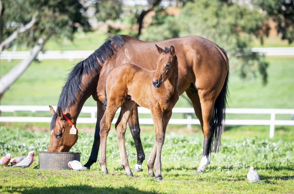 Playing God’s current foal crop jumped the gun at Yarradale this season with a colt from Burgoyne and a filly from Dainty Tess arriving in the first week of August. Both mares are by War Chant (USA) and that cross is headed by Baby Paris (LR Jungle Dawn Classic & LR Jungle Mist Classic).
