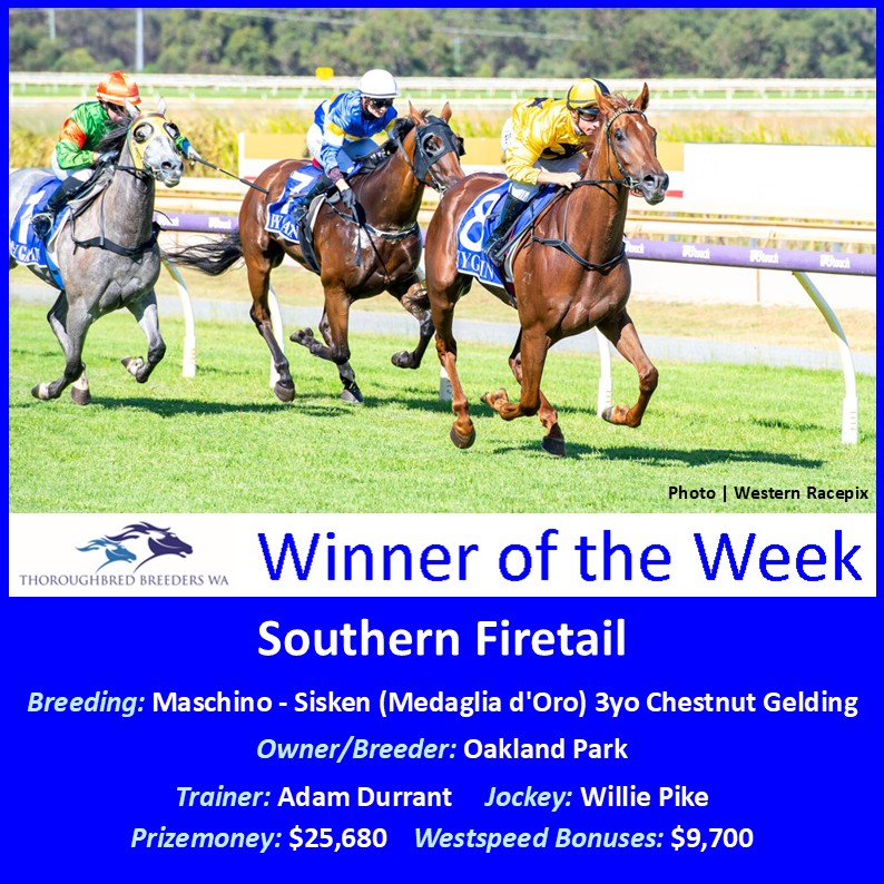 Oakland Park homebred Southern Firetail gave his rivals a start and a beating when facing the starter for the third time in the Keith Mullins & Glenn Money Maiden (1600m) at Pinjarra on Thursday.